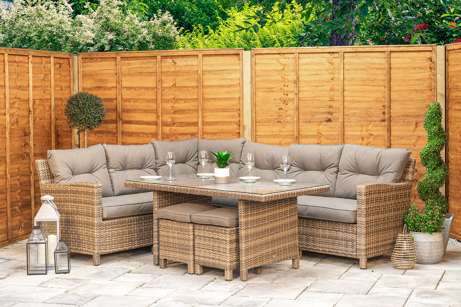 Delivery included. Cushions included. Minimal assembly required, with full instructions in the box and no tools needed. We stock this set ourselves, we check it before it ships, and we’re here if you need us after it arrives as well — because buying garden furniture should feel straightforward, not like a gamble.